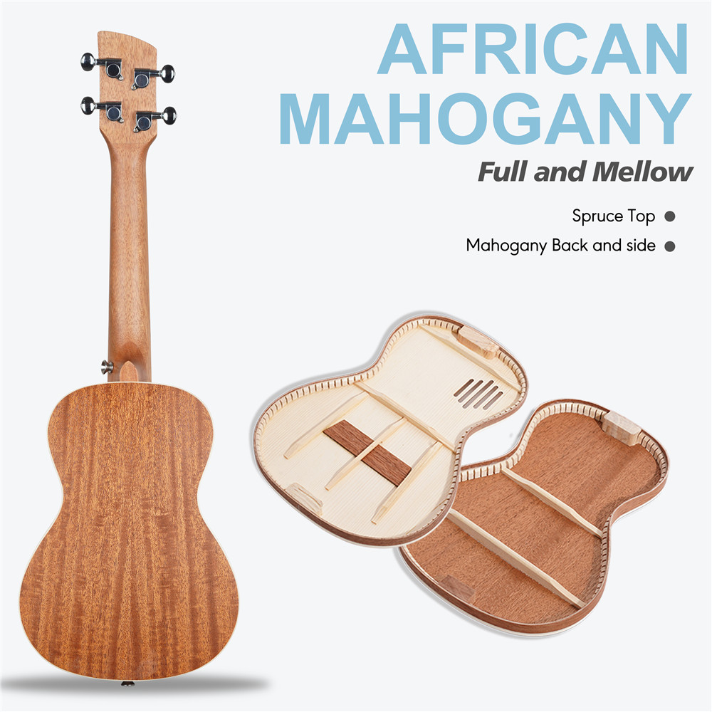 The PICKAPICK UC23 is a 23-inch concert ukulele built for musicians who want more than a traditional sound.Its Alaska spruce top and African mahogany body create a warm, bright, and modern tone that stands apart from conventional ukuleles.Featuring Pickapick’s signature dual soundhole design—the honeycomb main soundhole and a side monitor soundhole—UC23 offers greater projection, clearer resonance, and a more immersive playing experience.The side monitor lets you hear your performance directly, while the honeycomb soundhole enhances clarity and openness, shaping the unique Pickapick sound.A distinctive voice, modern tone, and playful style—UC23 redefines what a ukulele can sound like.